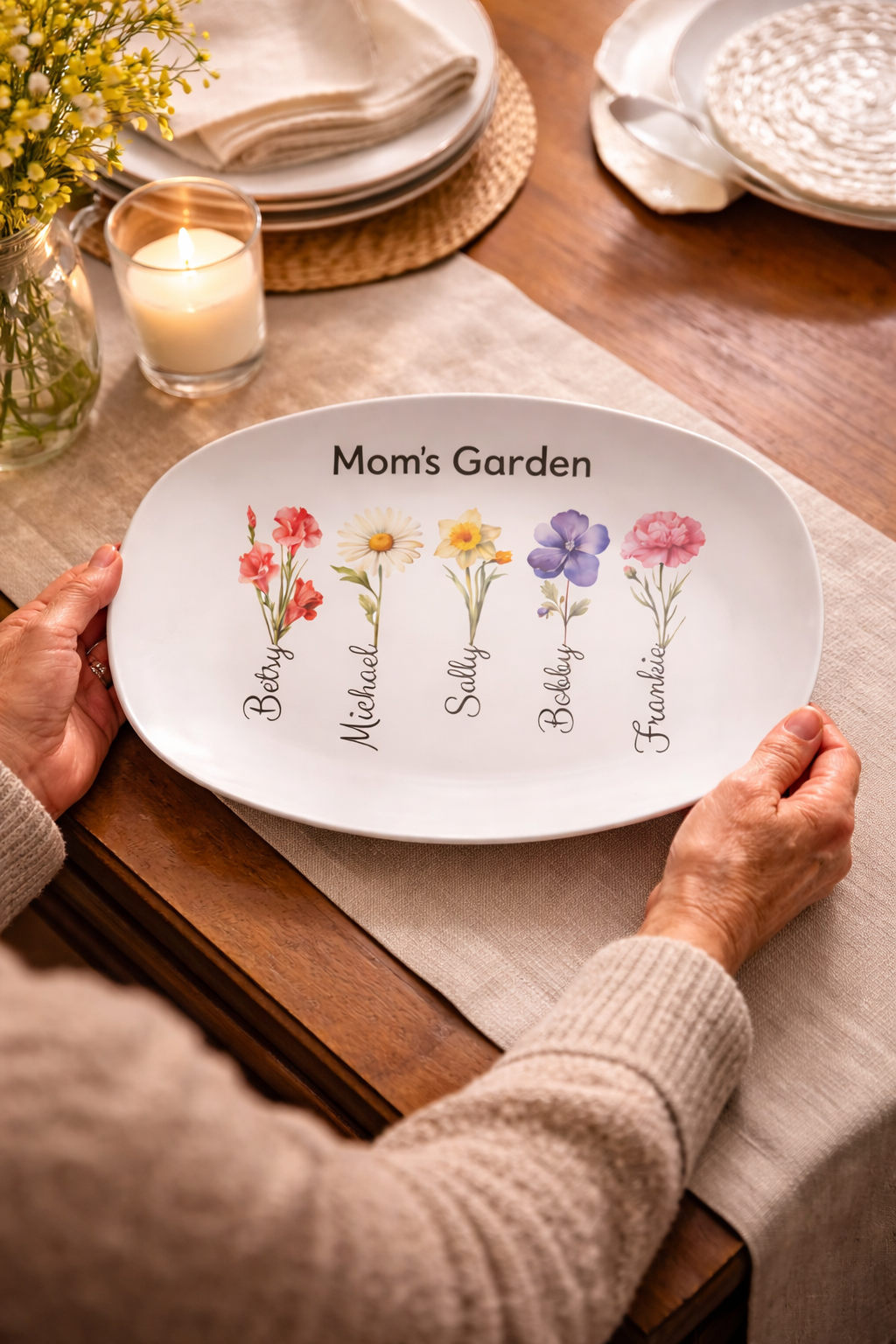 You do not have to wait until Mother's Day to get this personalized platter.